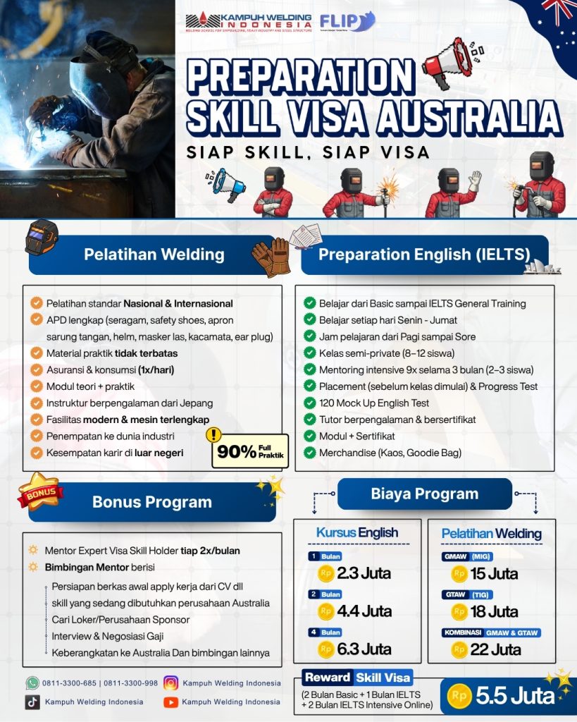 Sekarang nggak perlu pusing lagi! Kampuh Welding Indonesia bareng Flip Education resmi buka program Preparation Skill Visa Australia ✨